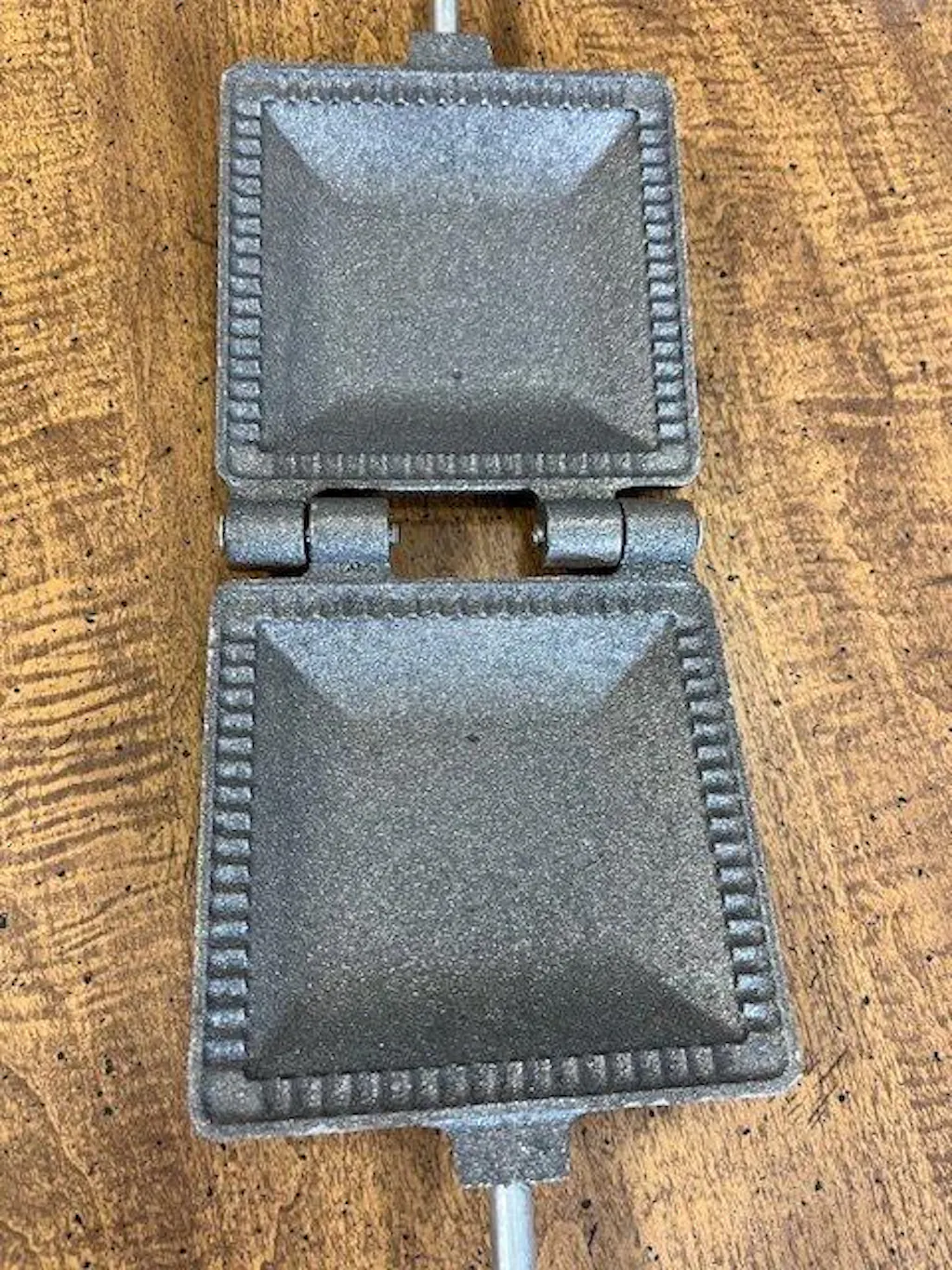 Darlene Lloyd This is a great find! Cast iron with the crimped edges to secure your favorite mountain pie recipes.